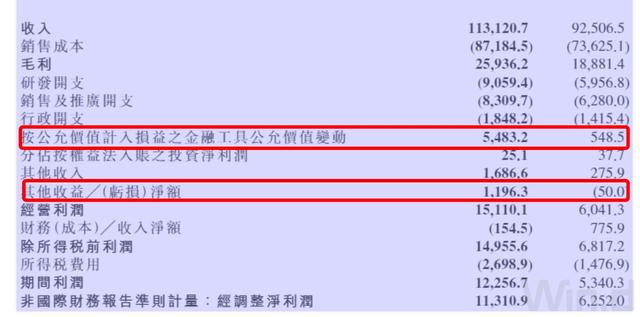 小米本季度净利创新高,更多来自于公允值变动收益和其他收益,两项共计大约65亿元,同比去年同期的5亿元增加60亿元。