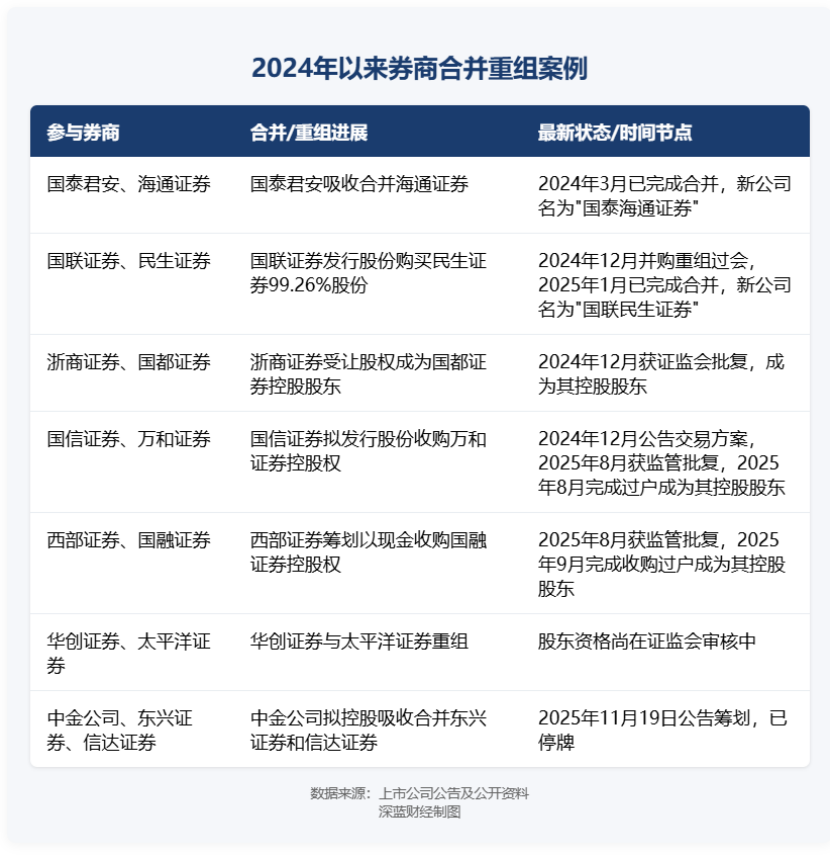 2024年以来,中国证券行业并购重组步伐明显加快,多家券商通过合并重组提升竞争力。先后完成了国泰君安合并海通证券、国联证券收购民生证券、浙商证券收购国都证券、国信证券收购万和证券、西部证券收购国融证券。