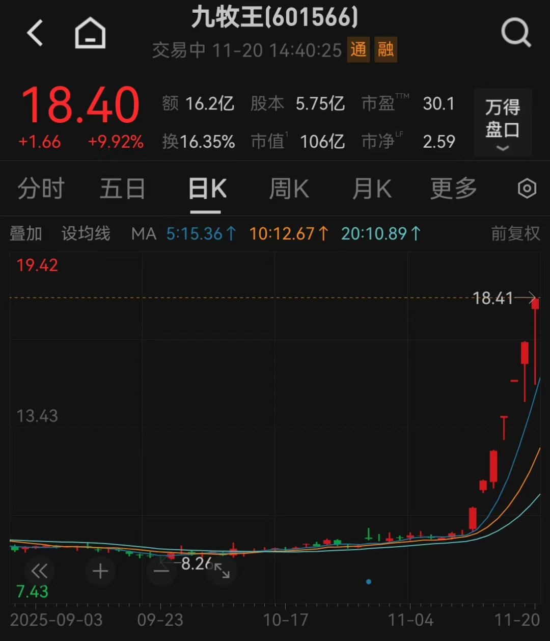 昨日晚间,九牧王发布公司股票交易异常波动的公告称,公司股票交易存在市场情绪过热情形及较高的炒作风险,可能存在短期涨幅较大后的大幅下跌风险。截至2025年11月19日,公司扣非后的市盈率为52.5倍,所处行业市盈率中位数为20.38倍,公司相关指标显著高于行业平均水平。此外,公司存在业绩下滑的风险。