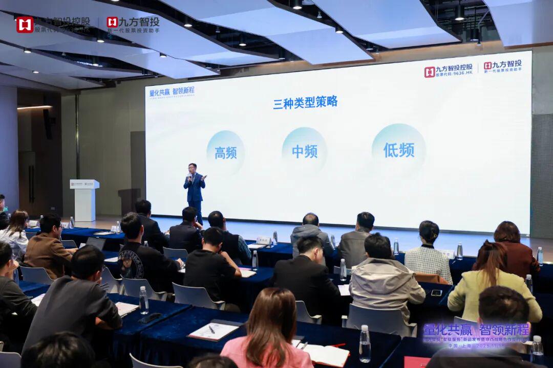 九方智投“星级服务”项目负责人郑昊在发布会上详细介绍九方智投自身量化研发实力及该产品的架构与价值。