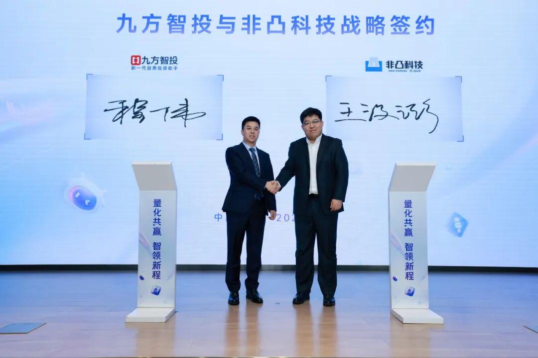 最后,在发布会现场,九方智投总经理程伟与上海非凸智能科技有限公司联合创始人、CEO王浚澎共同举行了战略合作签约仪式,这标志着强强联合,双方在量化投资与科技赋能领域的合作进入新阶段。