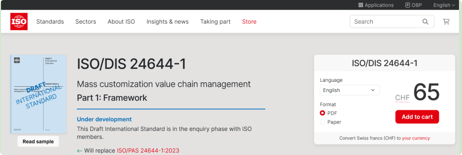 其中,全球独创的大规模定制模式是卡奥斯COSMOPlat的发展和创新之本。2019年10月,由卡奥斯COSMOPlat主导的大规模个性化定制国际标准提案正式立项。历经4年攻坚克难,2023年9月14日,ISO PAS 24644-1大规模个性化定制价值链管理 第1部分:框架国际标准正式发布。这是ISO全球首项针对智能制造全价值链管理的国际标准,填补了大规模个性化定制领域标准的空白,为我国制造强国战略在标准化领域拉开新的篇章。