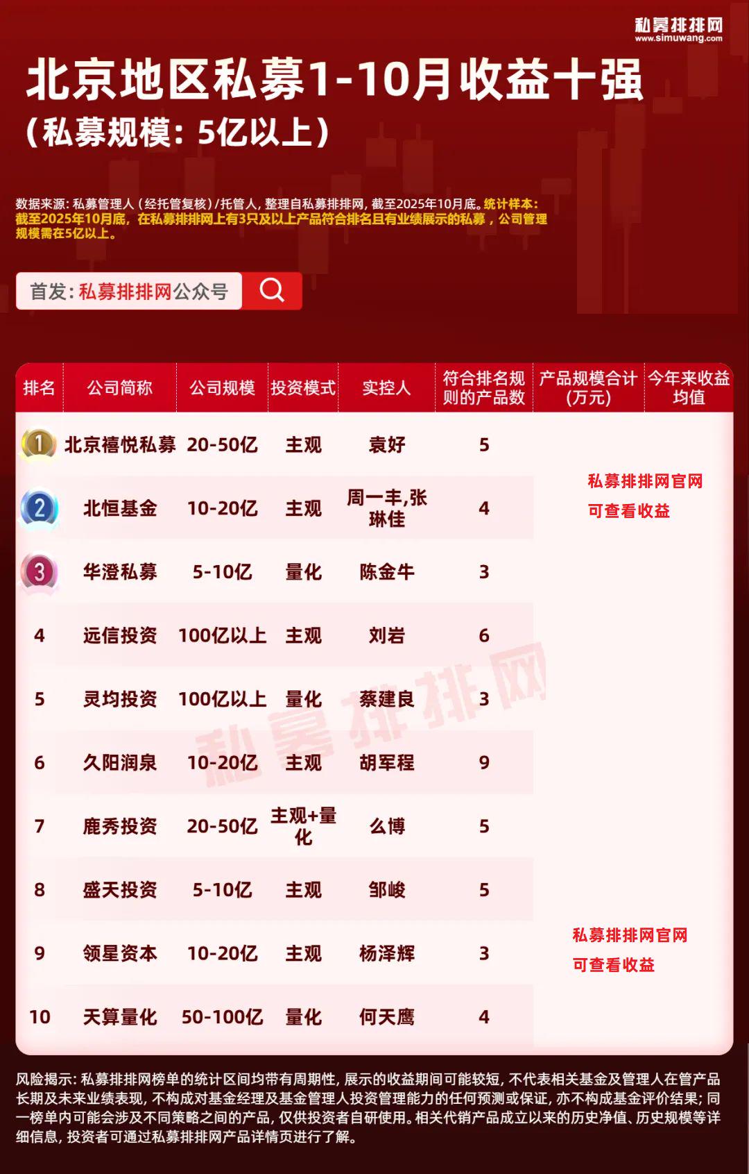 北京地区:北京禧悦私募夺冠!远信投资居前!