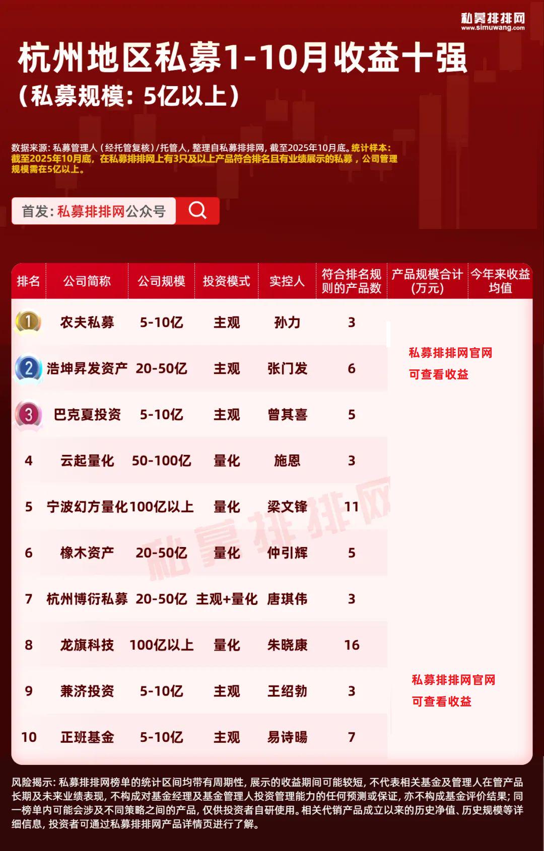 杭州地区:农夫私募夺冠!幻方量化上榜!