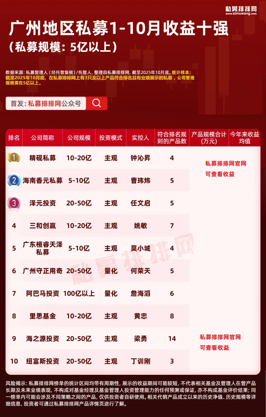 业绩方面,有业绩显示的288只广州地区私募产品,今年1-10月收益均值为34.05%;今年来收益位居前三的私募分别是:精砚私募、海南香元私募、泽元投资。
