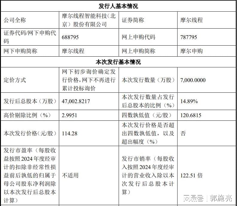 作为国产GPU第一股的摩尔线程,即将登陆科创板市场。从公开数据显示,摩尔线程的发行价格为每股114.28元,募资80亿元,预计上市时的股票市值约为537.15亿元人民币。