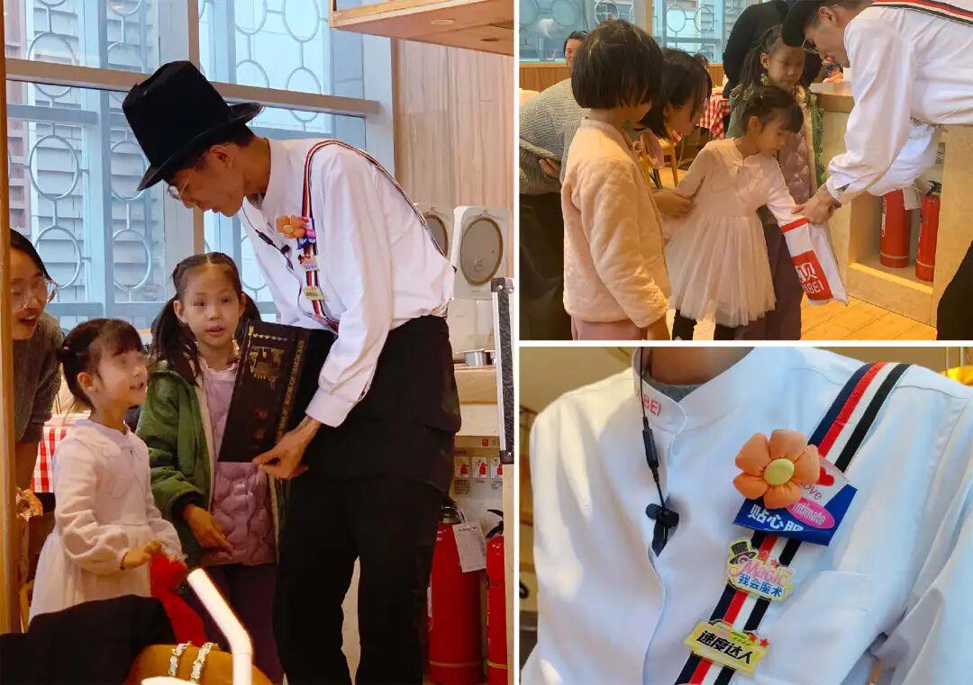 ◎佩戴“我会魔术”徽章的店员与小朋友互动 摄图:内参君