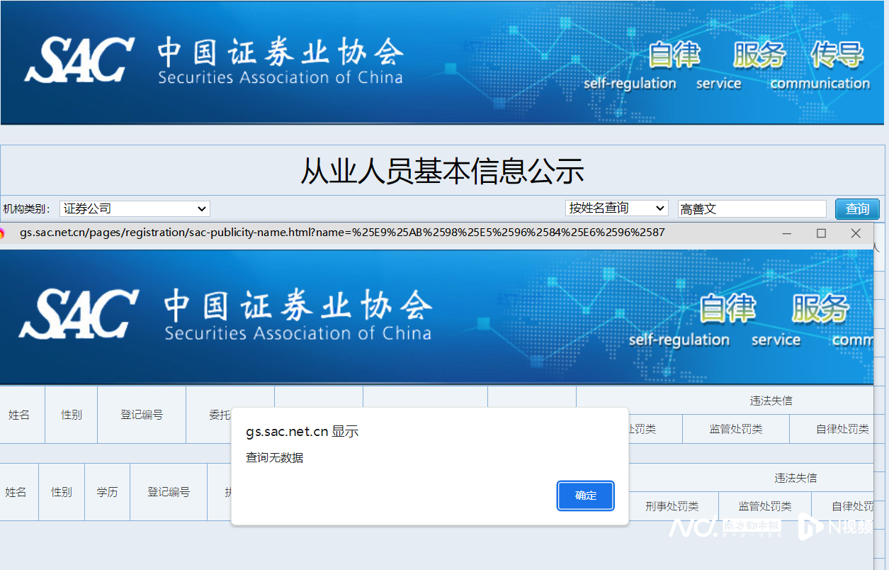 南都·湾财社记者通过中国证券业协会官网“从业人员基本信息公示”系统查询,输入“高善文”后显示“查询无数据”,确认其证券从业注册信息已注销。这标志着高善文在国投证券(及其前身安信证券)长达18年的职业生涯正式结束。