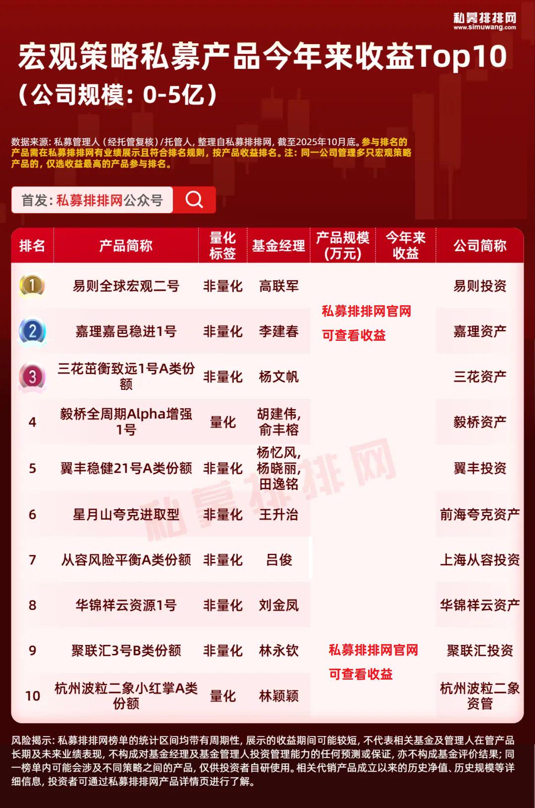 今年前10月收益位居前3的宏观策略产品依次来自:易则投资、嘉理资产、三花资产。