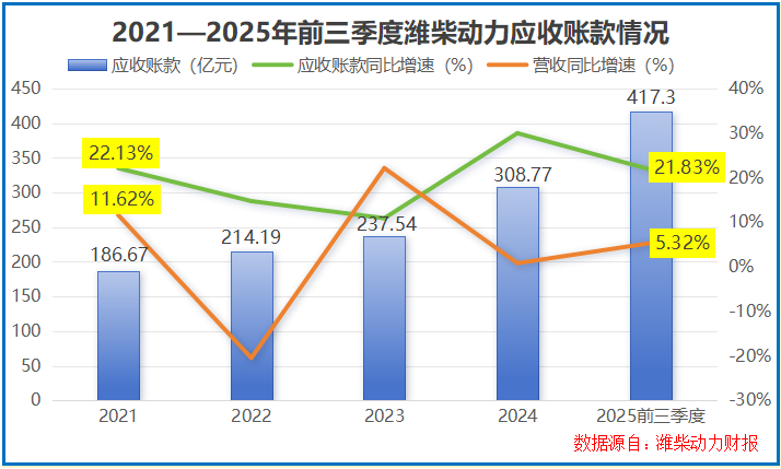 近年来,公司的应收账款增速基本是高于营收增速的,2025年前三季度其应收账款同比增长21.83%,而同期营收同比仅增长5.32%。