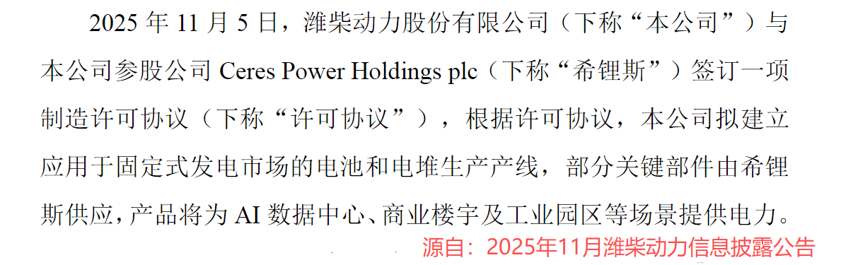 11月,公司与Ceres签署制造许可协议,彻底打通“电池-电堆-系统-电站”全产业链,为后续大规模商业化铺平道路,更助力其在AI数据中心市场占据先发优势。