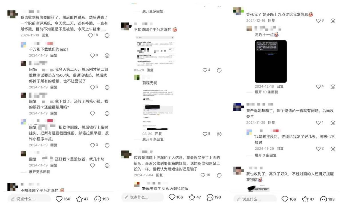 更早之前,2024年,就有多位网友在社交平台上表示,遇到了类似的骗局,怀疑是招聘平台泄露了用户信息。