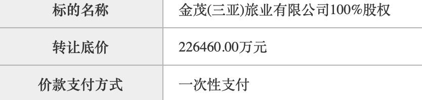 中国金茂拟以约22.65亿元的底价转让金茂(三亚)旅业有限公司100%股权。(图片截自北京产权交易所官网)