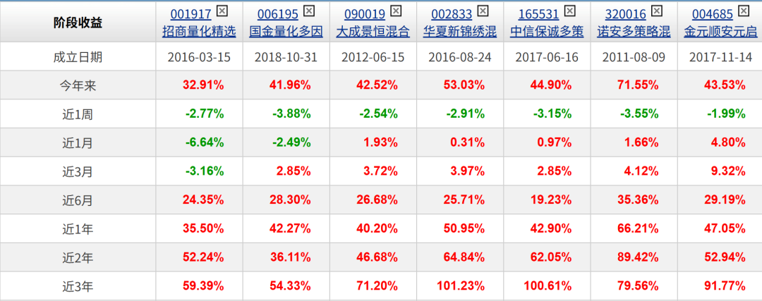 我自己持有的招商量化反而今年表现最差;表现最好的是诺安多策略。中信保诚多策略,最近刚换了基金经理。