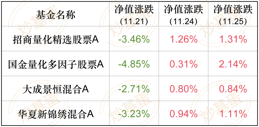 顺便也拉了一下上周五到今天的净值当日涨跌幅,也看看这几只表现如何。