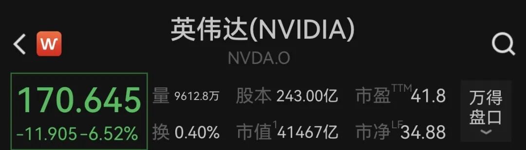 11月25日美股开盘,英伟达跌幅扩大至6.52%,创9月17日以来新低,总市值跌至4.15万亿美元,较历史最高点跌去1万亿美元。