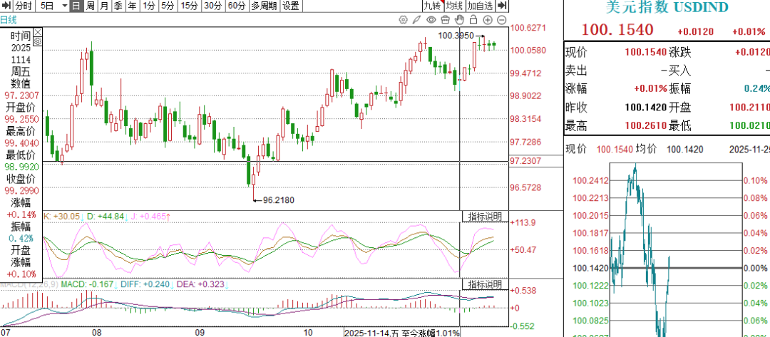 值得一提的是,进入四季度,美元指数震荡上行,已回升至100关口上方。