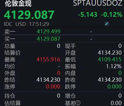 11月25日,隔夜国际金价大涨后,早盘继续冲高,最高上探4155.916美元/盎司,随后有所回落,现交投于4130美元/盎司附近,维持高位震荡。