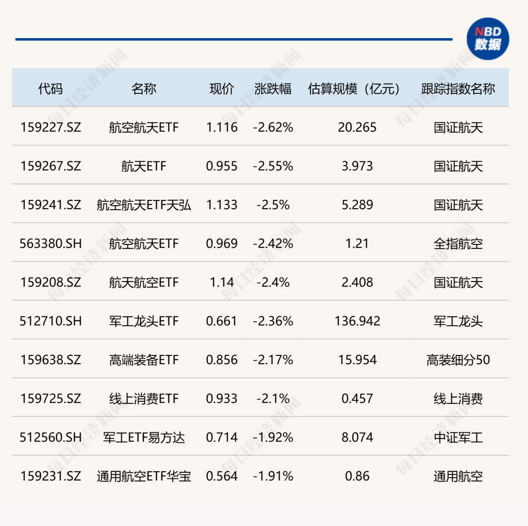 下跌方面,航空航天相关ETF跌超2%。