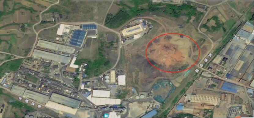 上图红圈处是此处矸石山,山东天地图显示此处卫星图片的时间为2025年5月27日。截图左侧大片的厂房应该就是原广通化工,现广通新材料。