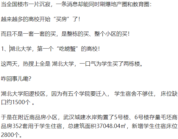 这两年降价促销、送车位、用拆迁房票……都去化不了,高校却能快速消化。