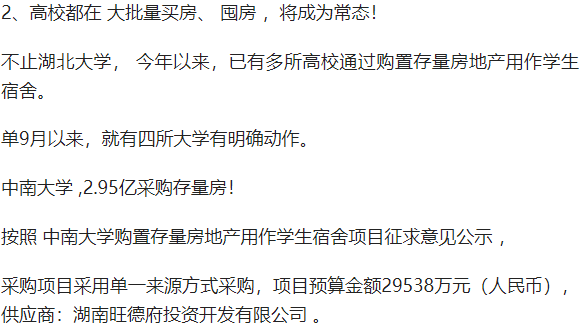 高校基本都在城市外围或者郊区,恰恰是楼市去库存最难、库存最大的地方……