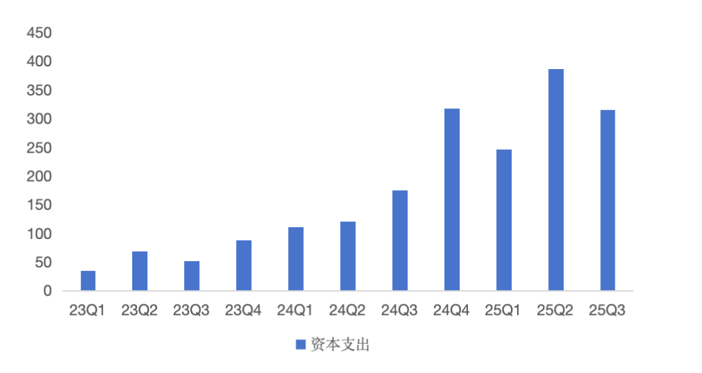 三是资本开支依然维持在300亿规模的高强度支出。公司25Q3经营活动净现金流约为101亿元,资本支出为315亿元(对应上季度387亿元),相应自由现金流为流出218亿元,较上一季度净流出188亿元略有扩大。