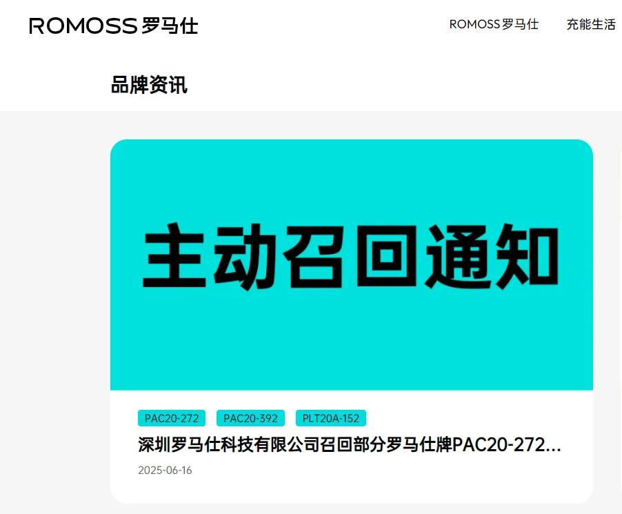 主角罗马仕被取消3C认证,召回问题充电宝,并公告停工停产6个月。赛道其他玩家人人自危,积极整改、召回,生怕自己步了后尘。