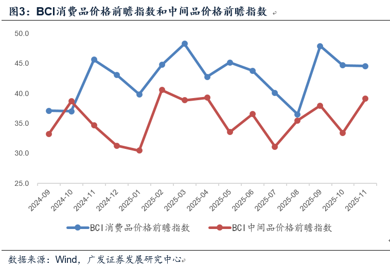 11月消费品价格前瞻指数为44.6,略低于前值的44.7。