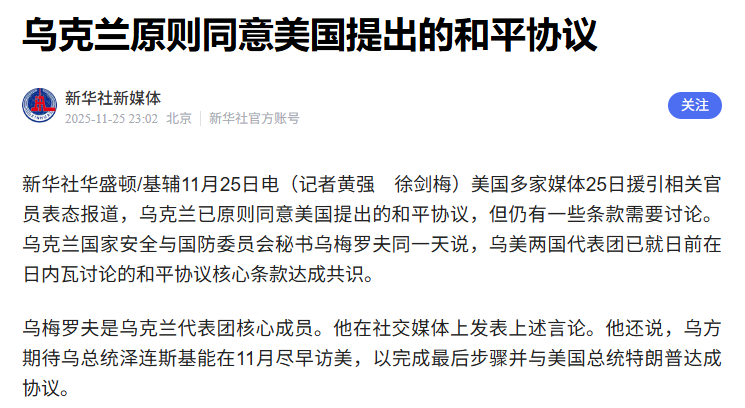 其实在这次日内瓦会谈后,特朗普提出的28点和平计划,已经被改得面目全非了,美乌双方又达成了一份19点计划。