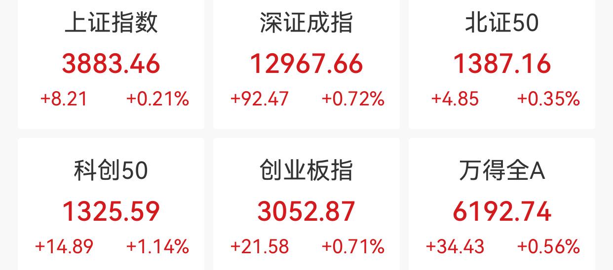 中新经纬11月28日电 28日上午,A股三大指数低开高走。截至午盘,上证指数涨0.21%,报3883.46点;深证成指涨0.72%,报12967.66点;创业板指涨0.71%,报3052.87点。两市半日成交额不足1万亿元。