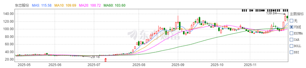 就以赵建平为例,这次布局堪称“精准潜伏”。他在2025年第二季度大举买入东芯股份,持有513万股,当时市场并未关注到这家公司,股价在23.4元至36.97元之间震荡,直到7月,股价开启了一路大涨。同时买入的还有赵吉,持有300万股(网传二人系父女)。