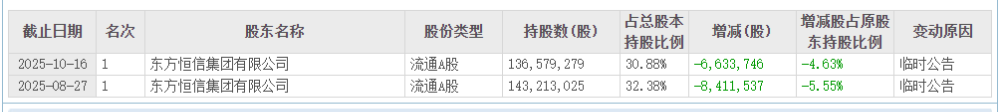 当然,近期东芯股份也并非第一次遭遇控股股东减持。此前的8月25日至8月27日,东方恒信通过集中竞价方式减持约841万股,预估其总金额约8.45亿元。两次减持下来,东方恒信的持股比例由约34%下降至30%。