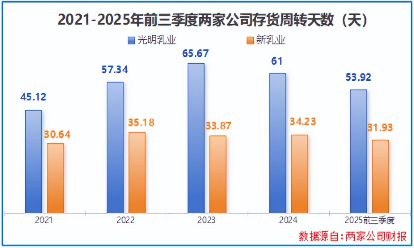 这种高效供应链不仅保证了产品新鲜度,还将公司2025年前三季度的存货周转天数降至31.93天,低于同期光明乳业的53.92天。