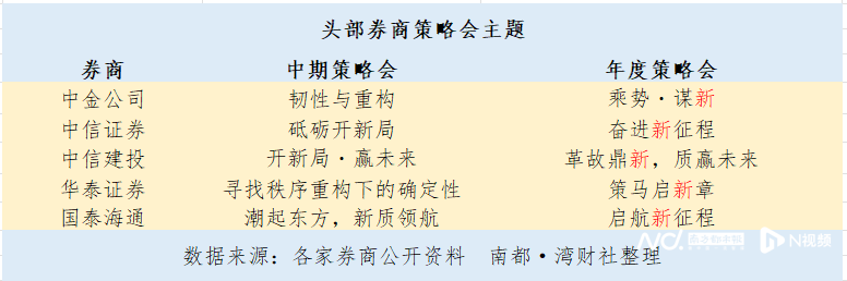 到了年度策略会,几家头部券商的主题里都出现了“新”的关键词—— 中金公司“谋新”、中信证券“新征程”、中信建投“革故鼎新”、华泰证券“启新章”、国泰海通“新征程”。
