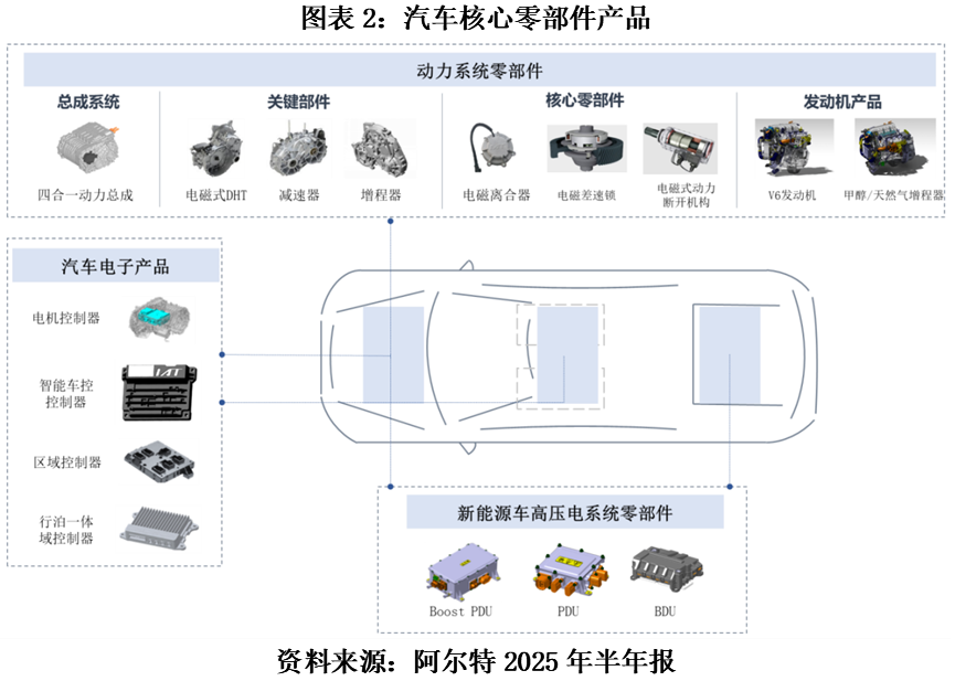 为摆脱困境,阿尔特近年来积极寻求业务突破,从2023年起由汽车设计向核心零部件制造领域拓展,目前已覆盖动力系统、新能源车高压电系统和汽车电子等多个产品方向。