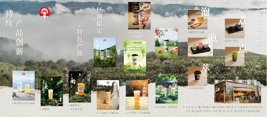 产品创新方面,霸王茶姬第三季度在全国推出了“滇橄榄”活力轻果茶等产品,也在全国多地推出了区域限定新品,一经面世就一跃成为该区域广受欢迎的产品。例如,在广东地区,霸王茶姬推出的“赤霞跃金”加入了新会红柑风味;浙江区域推出了限定新品“风荷曲苑”,以龙井茶为茶底,结合柚香与荷叶清香形成清冽香调;在四川、西藏,霸王茶姬推出与熊猫和花联名的限定新品“川上行歌”,甄选红玉红乌龙搭配自然苹果果香,呈现层次丰富的馥郁茶香。