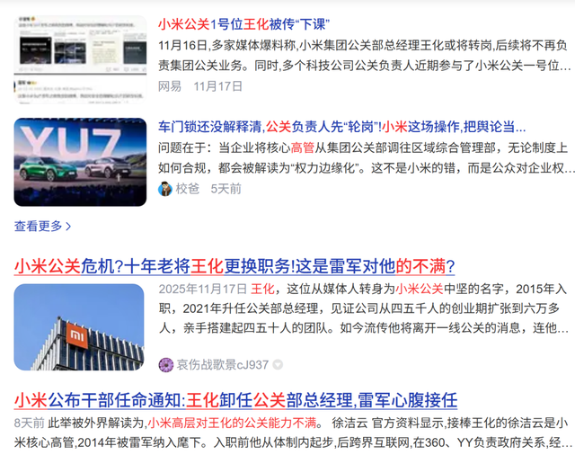 柏文喜进一步分析称,小米内部工作10年的公关负责人王化被轮岗至武汉,引发外界对小米对外沟通策略调整的关注。结合当前小米汽车频繁“翻车”的舆论环境,这一人事变动可能反映出,雷军对公关应对机制不满,希望通过人事调整强化危机管理能力,或是为区域化战略(如武汉汽车工厂)布局,强化地方公关与政策沟通,也可能是内部轮岗机制的一部分,旨在培养复合型人才。未来小米在对外传播上可能更注重技术落地与宣传一致性,并加强与消费者、媒体的信任修复。
