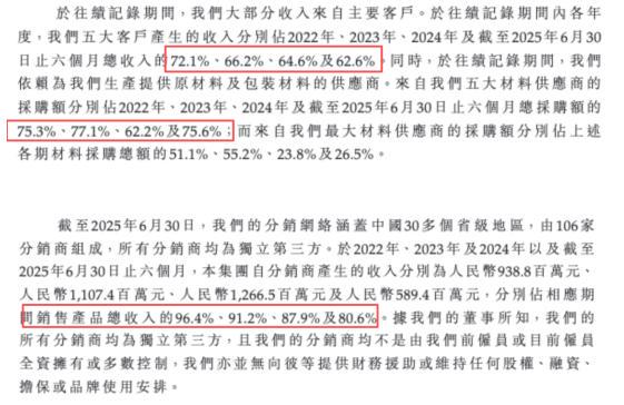 更值得关注的是其分销体系的结构性变化。尽管分销商总数从2022年的173家缩减至2025年上半年的106家,降幅近40%,但通过分销渠道实现的收入占比仍高达80.6%。这一反差表明,公司在渠道精简过程中,业务资源正加速向少数核心分销商集中,进一步加剧了公司的渠道依赖风险。