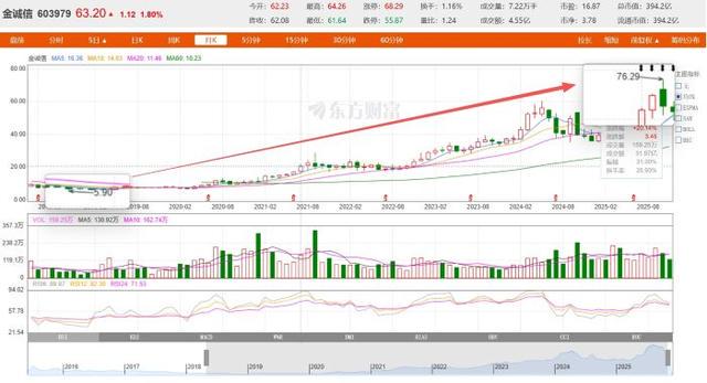 进入今年8月低,受铜价拉升的持续利好,金诚信股价屡破历史新高。股价7年实现狂飙971%,市值接近400亿。仅从年初至今,其股价已实现76.29%的涨幅,跑赢一众采掘同行。
