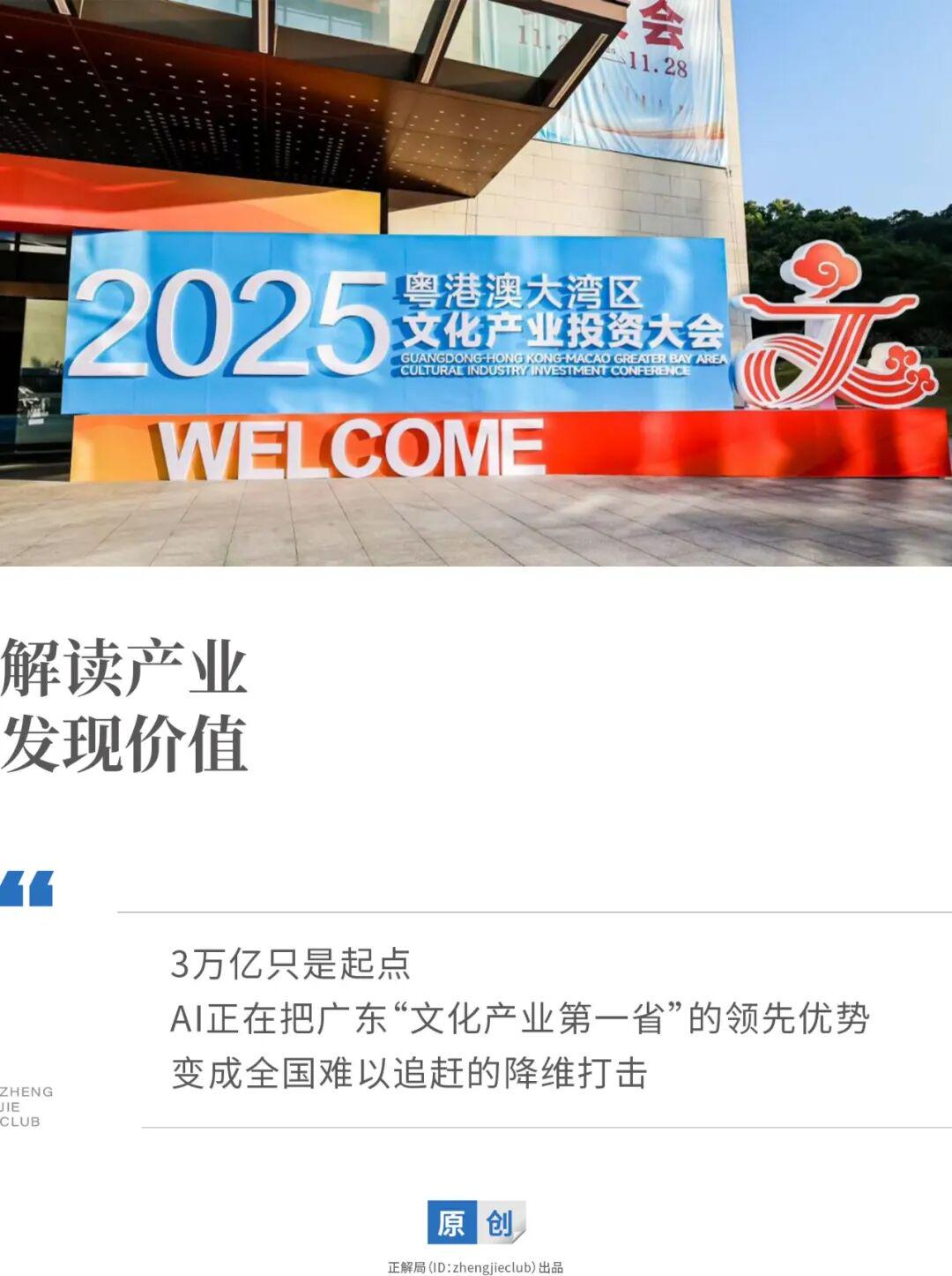 而在正解局看来,从AI筑基到生态育企,从消费升级到文化出海,广东始终以创新为引擎、生态为土壤、全球为舞台,不仅为“文化产业第一省”注入了持续动能,更向全国展示了文化产业高质量发展的可行路径。