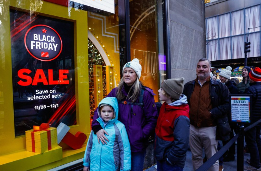 11月28日,消费者在纽约排队参加“黑色星期五”购物。图源:法媒