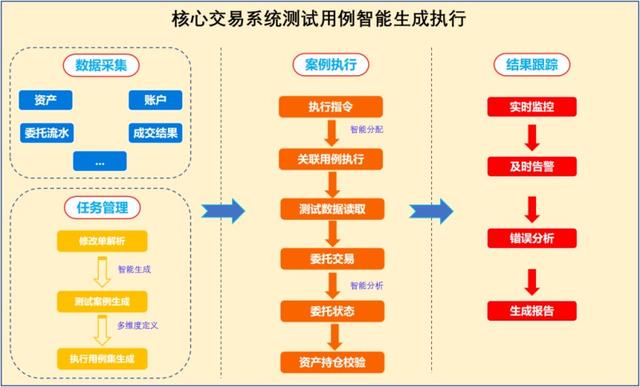 打造贯穿版本确认、变更比对、测试升级、参数确认、缺陷分析至报告生成全环节的核心交易系统变更质量管理平台,实现变更评估的自动化、平台化闭环管理,变更实施周期缩短约三分之一。变更实施协同工作机制减少跨部门沟通成本,提升变更决策效率。运用大模型技术,通过集成数据管理、任务管理、执行管理,实现“修改说明导入—用例设计—任务执行—结果展示”的测试全流程闭环管理,测试全流程耗时减少70%,显著提升测试效率与覆盖度。