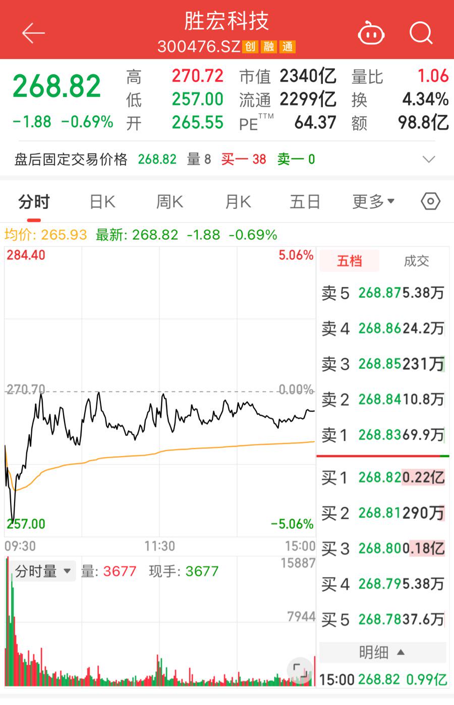截至12月1日收盘,胜宏科技股价报268.82元/股,微跌0.69%,年内涨幅仍高达541.27%。