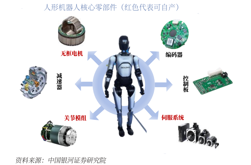 再落脚到零部件上,若按照单个人形机器人需26个无框力矩电机,单个价格400元计算,仅无框力矩电机即可形成千万级别的市场空间。