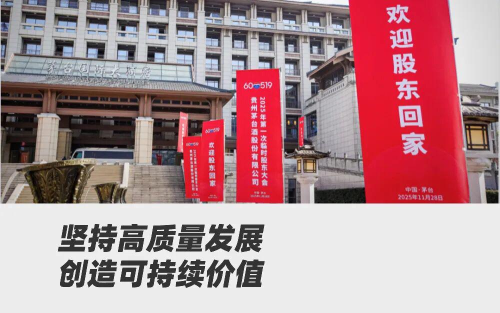 2025年11月28日,贵州茅台年度第一次临时股东大会在此举行,从酒店的巨型屏幕到院内的路灯旗帜,营造出浓厚的家园氛围。