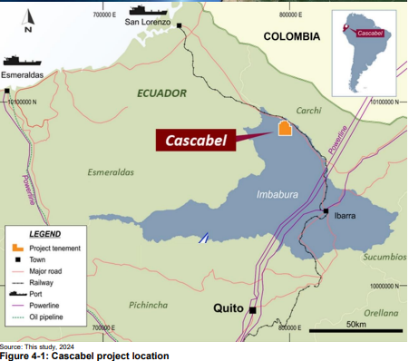 索尔黄金的核心资产,为厄瓜多尔Cascabel项目的100%股权,其矿山被认为有潜力成为南美顶级的铜金矿。