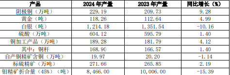2023年、2024年,江西铜业自产铜精矿含铜分别达到20.2万吨、19.97万吨。以上矿产铜,全部来自于公司在产的德兴铜矿、永平铜矿等五大自有矿山。