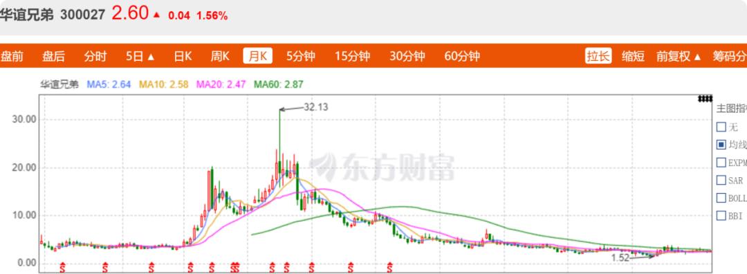 但他们在短视频领域的尝试后,华谊兄弟的股价却迎来一波连涨,截至11月28日收盘价为2.60元/股,基本保持在2025年年内持平。而相比2015年6月的32.13元的股价高点,其股价整体跌幅达92%,如今市值仅剩72亿元。