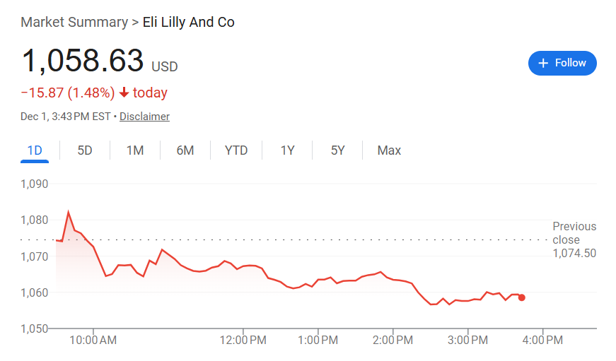 尽管公司持续释放降价信号,但市场对此反应谨慎,礼来股价在周一下跌逾1%。